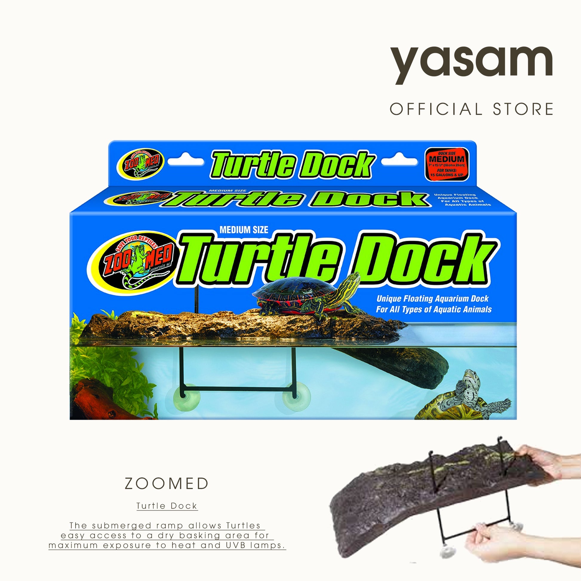 Zoo Med Turtle Dock® 和 Turtle Pond Dock® 是独特的浮动码头,可供水龟在上面晒太阳。自流平功能可自动调节所有水位。水下坡道使海龟可以轻松进入干燥的晒背区域,最大限度地暴露在热量和 UVB 灯下。有多种尺寸可供选择,可轻松容纳任何尺寸的水龟。